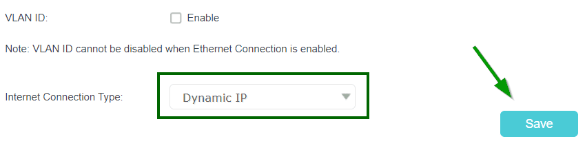 IPoE (Dynamic) Connection VLAN is NOT enabled Select Internet Connection Type as “Dynamic IP or IPoE” click Save/Apply | ![]() |